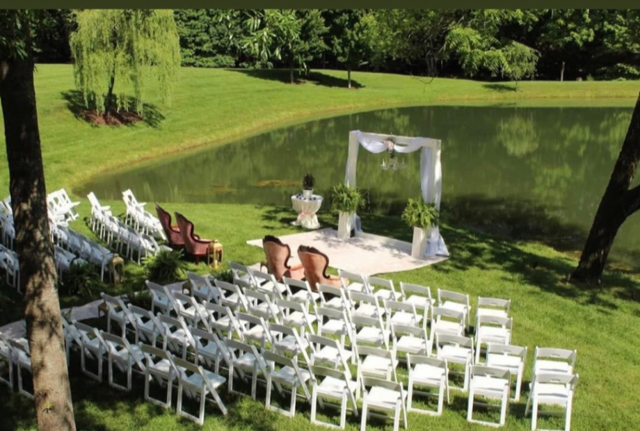 Steele Crest offers multiple settings for your wedding. The property has a refurbished feed barn next to the pond, a garden gazebo area and an open area where a tent can be erected.