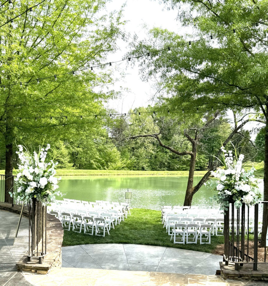 The feed barn provides an indoor and outdoor space for your wedding. The pond side provides an ideal location for the wedding ceremony with the reception steps away. The outdoor lighting throughout the property provides for a beautiful event during the evening hours.